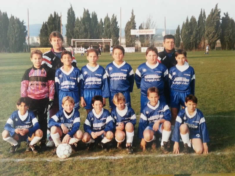| Au 2ème rang (6 debout) : Jean Philippe COSSEDU - Marc MICCICHE - David DANTES - Djamel TAMAZOUNT - Fabien CANOLLE - Cyril QUILES |