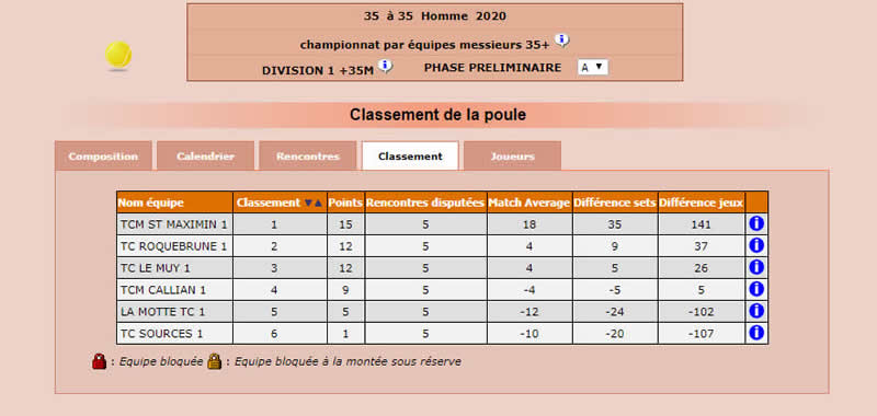 2019/2020 : Championnat par équipes, plus de 35 ans Hommes division 1 |
