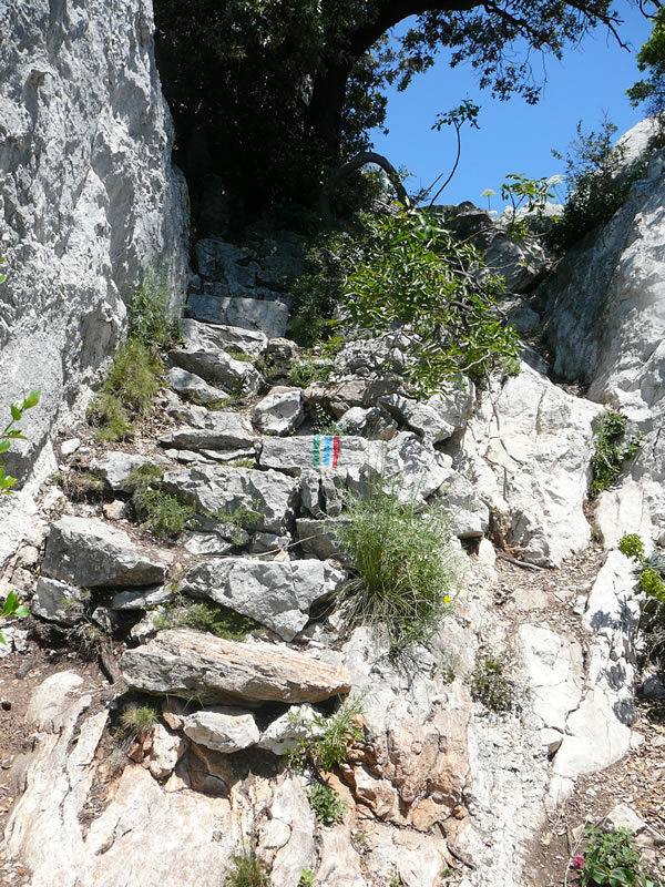 Cairn marquant le sentier à gauche qu'il faut prendre (tout droit on rejoint le col de la Gineste)