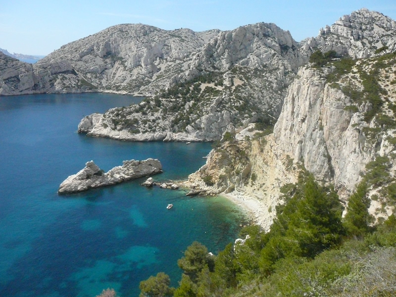 On découvre un panorama magnifique avec au fond, l'île de Riou |